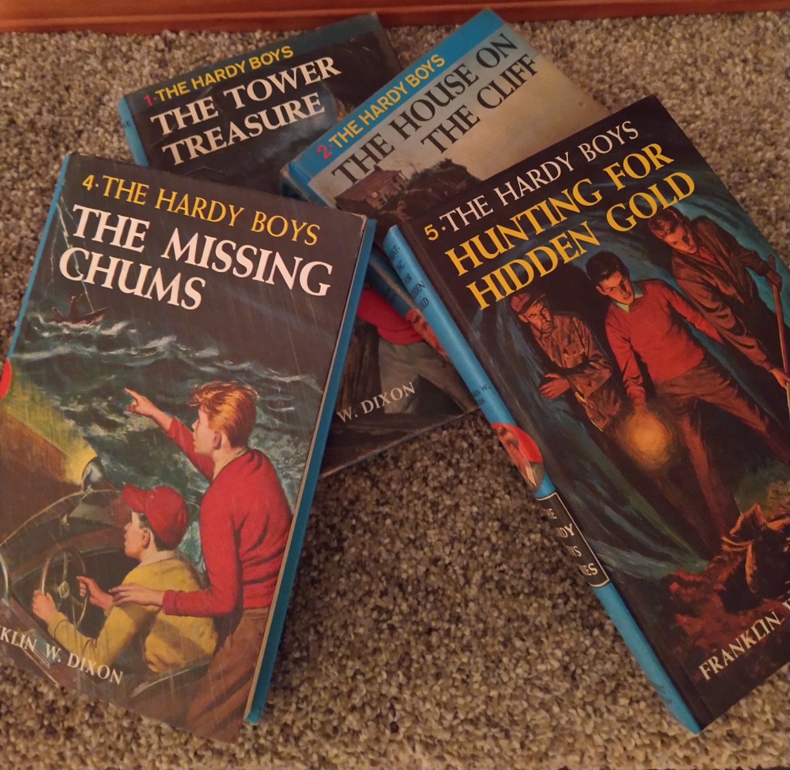 I do not usually read fictional material, but if I do, it is based on real life crime dramas. You know, like the “Hardy Boys”. The photo above is just a few from my original collection.
